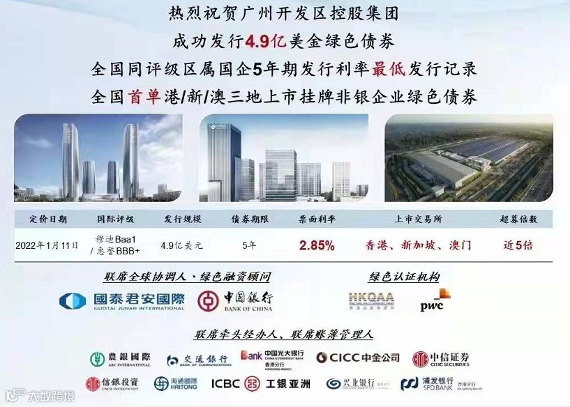 【2】广州开发区控股集团成功发行全国首单非银企业“港、澳、新”三地挂牌上市绿色美元债券