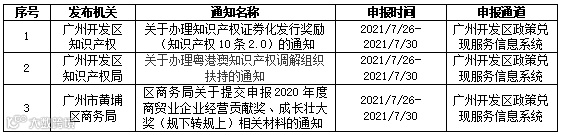 【5】广州开发区发布办理知识产权证券化发行奖励/调解组织扶持、商贸业企业经营贡献奖/成长壮大奖等通知