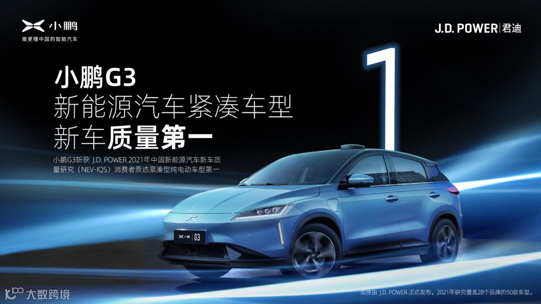 继小鹏P7荣获中国汽研 i-VISTA 测试五星成绩,成为行业第一个智能五星汽车之后,在7月22日公布的2021年J.D. Power中国新能源汽车新车质量研究(NEV-IQS)测试结果中,小鹏G3经消费者评选赢得新能源汽车紧凑车型新车质量排名第一的佳绩。