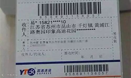 ▲顺丰快递的单子上,收件人电话号码被“*”代替