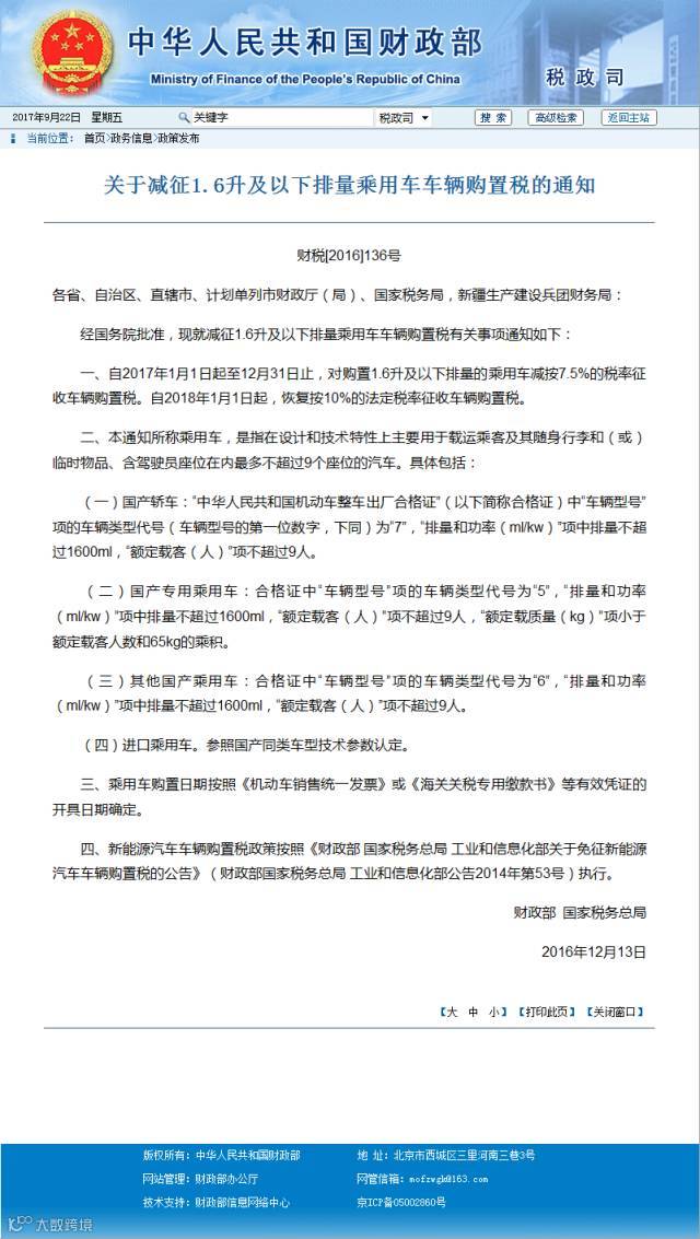 还有更“扎心”的,根据财政部相关规定,从2018年1月1日起,1.6升及以下汽车购置税将恢复10%的税率,而现在只要7.5%。