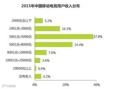 中国移动电竞用户的收入,8000-10000元这个档只有7.8%,而5000-8000元这个档的人数有24.4%。