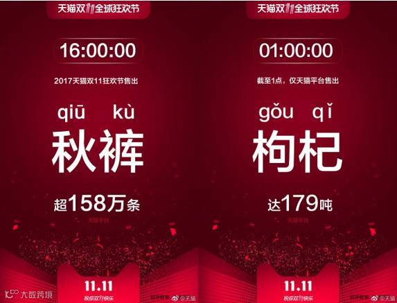 相信不少人还记得,在两周前的双11购物狂欢节上,有两件商品销量惊人:一个叫“秋裤”,一个叫“枸杞”。