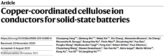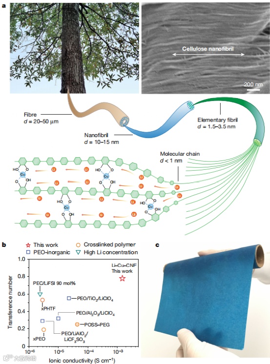 “木头大王”最新固态电解质Nature:Cu2+打通纤维素,扩展成为分子级通道,实现Li+的高速自扩散