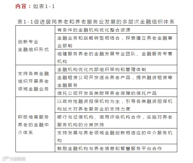 一、促进养老服务业发展的多层次金融组织体系