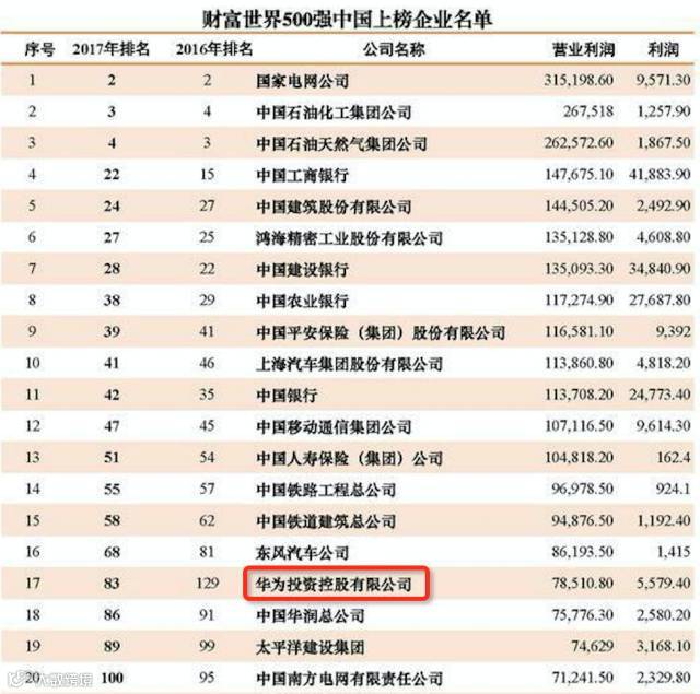 7月21日,2017年《世界500强》正式公布!你没有看错,中国的华为碾压众多西方列强,正式挺进前100,排名第83!