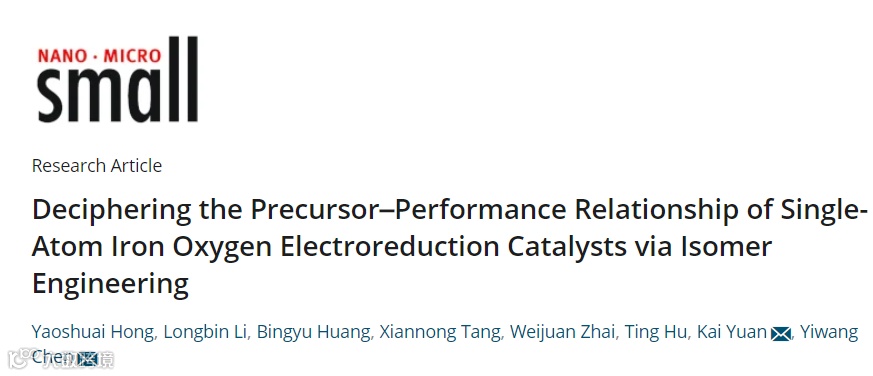 袁凯教授、陈义旺教授, Small:通过异构体工程破译单原子铁氧电还原催化剂的前驱体-性能关系