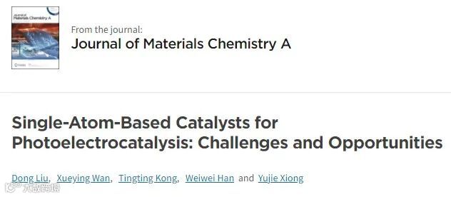 熊宇杰教授研究团队,JMCA观点:光电催化应用中的单原子基催化剂:机遇与挑战 科学材料站