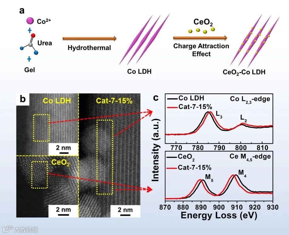 导读:该观点文章合成具有明确异质界面的CeO2-Co LDH异质结构催化剂,借助球差电镜和电子能量损失谱首次从原子层面揭示了CeO2修饰后的异质界面发生的电荷传递与转移机理