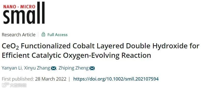 张新瑜副研究员、郑智平教授,Small观点:CeO2修饰Co LDH用于涉氧反应及其机理研究