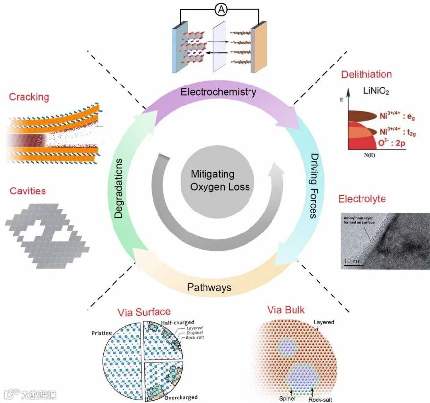 锂离子电池层状氧化物电极中的脱氧现象:机制,影响和改善手段