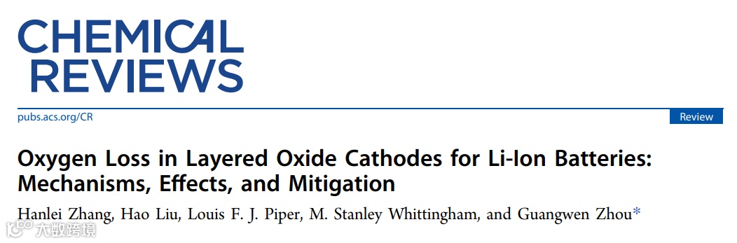本文中,来自纽约州立大学宾汉姆顿分校的周光文教授和诺贝尔化学奖得主M. Stanly Whittingham教授合作,在国际知名期刊Chemical Reviews上发表了题为“Oxygen Loss in Layered Oxide Cathodes for Li-Ion Batteries: Mechanisms, Effects, and Mitigation”的综述文章。