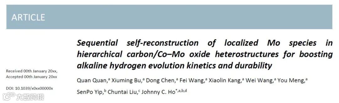 香港城市大学,何颂贤教授(Johnny C. Ho),JMCA研究论文:局域Mo物种的连续自重构促进碱性析氢动力学及稳定性的研究