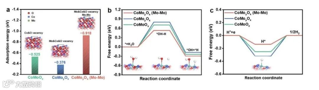 除此之外,理论计算证明Co@NCNT/CoMoyOx的最终演化Mo-Mo物种能够促进析氢动力学,从而促进碱性条件下的析氢反应。