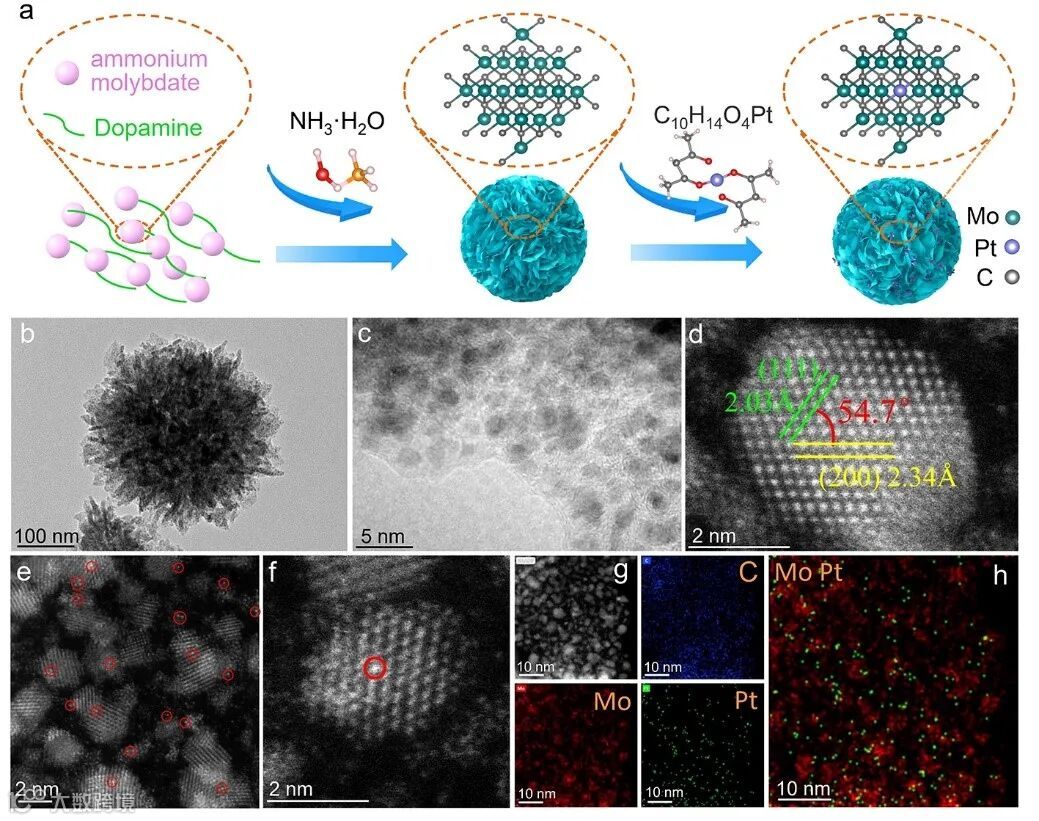 导读:本文通过两级分散策略巧妙设计并制备出一个锚定在α-MoC1-x@C载体上的几乎零价态Pt单原子高效的HER系列催化剂