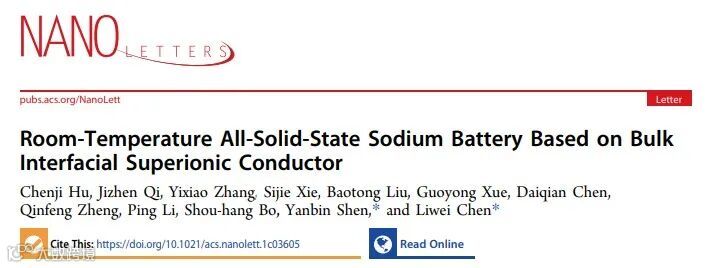 上海交大陈立桅教授、苏州纳米所沈炎宾研究员Nano Letters:基于体相界面导体的室温全固态钠电池