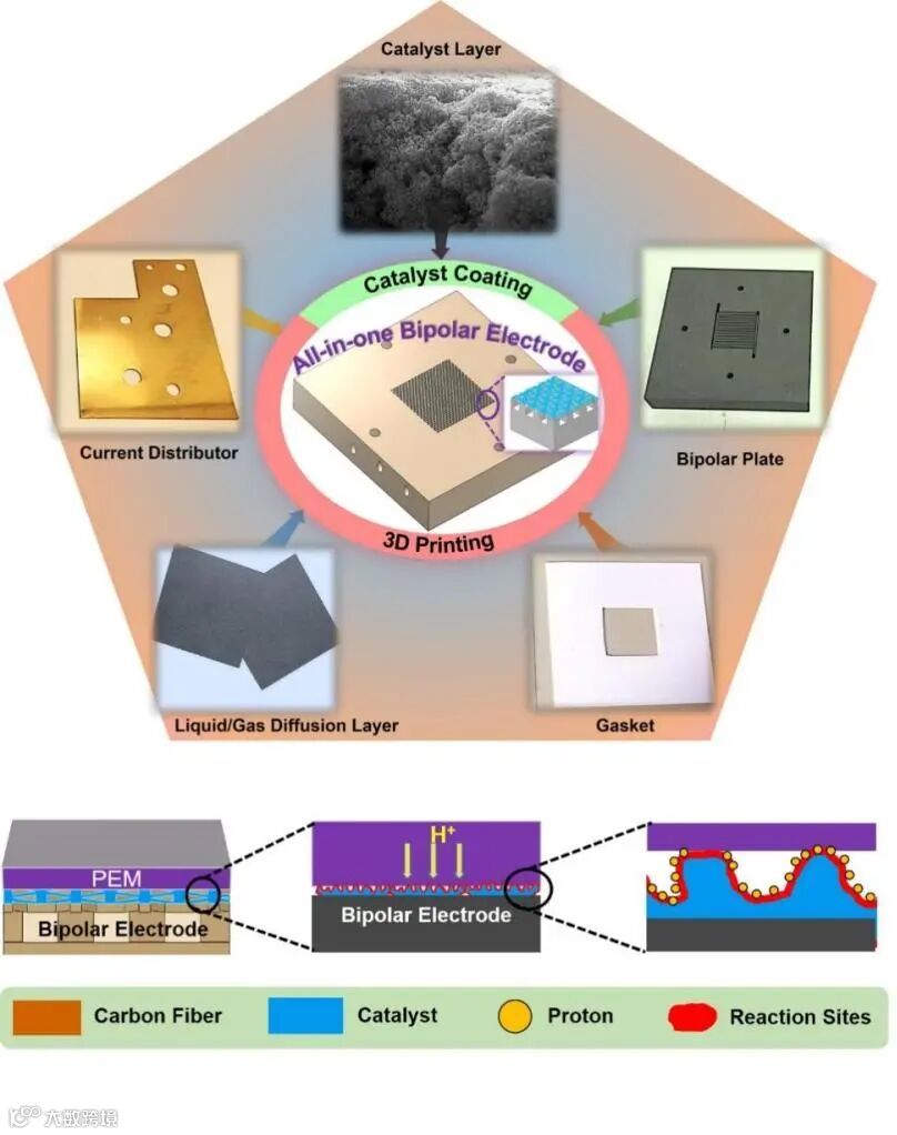 导读:本文采用先进制造技术(3D打印及金属沉积)开发出一体化(all-in-one)双极板电极(AIOBE)