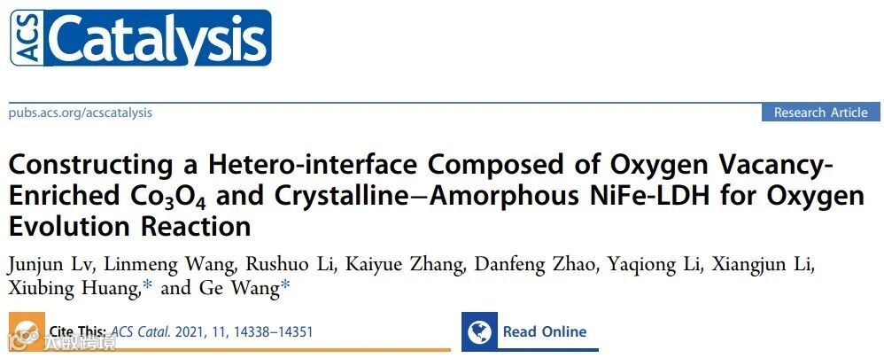 基于此,来自北京科技大学的王戈教授与黄秀兵副教授在国际知名期刊ACS Catalysis上发表题为“Constructing a Hetero-interface Composed of Oxygen Vacancy Enriched Co3O4 and Crystalline-Amorphous NiFe-LDH for Oxygen Evolution Reaction”的研究性论文。