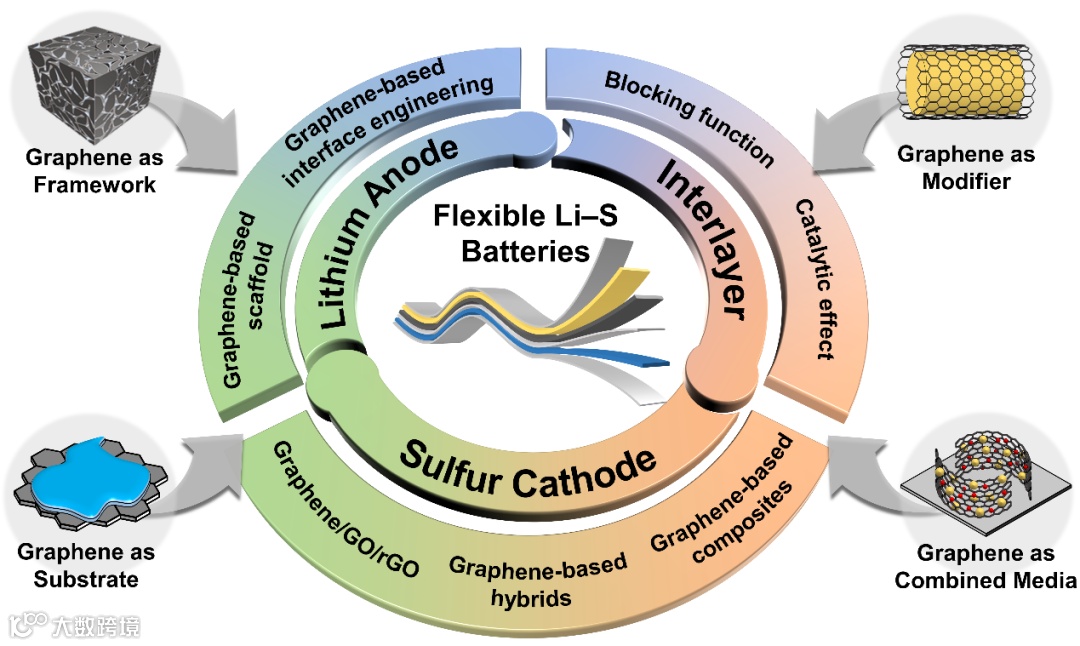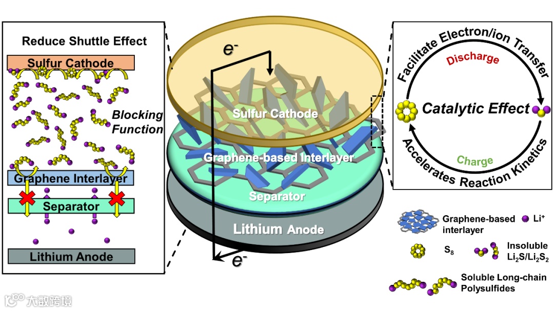 石墨烯作为材料基底——有效调控产物在固-液界面沉积/溶解过程,以延长循环寿命,但连续的界面不可避免产生多余内阻 -