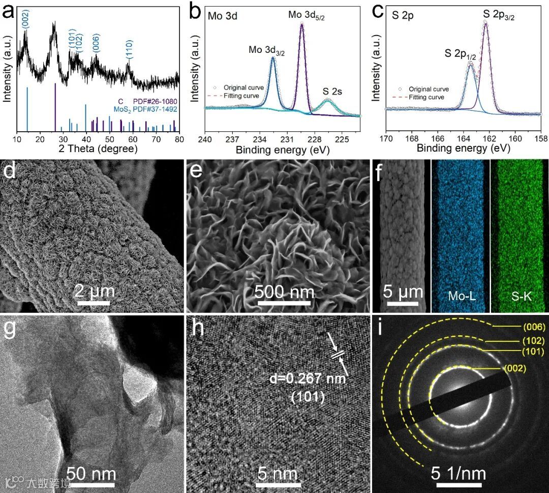 工作以生长在石墨毡上的二硫化钼纳米片(MoS2/GF)作为高活性且稳定的电化学一氧化氮还原催化剂,获得了高达99.6 µmol cm−2 h−1 的氨产率和76.6% 的氨法拉第效率。