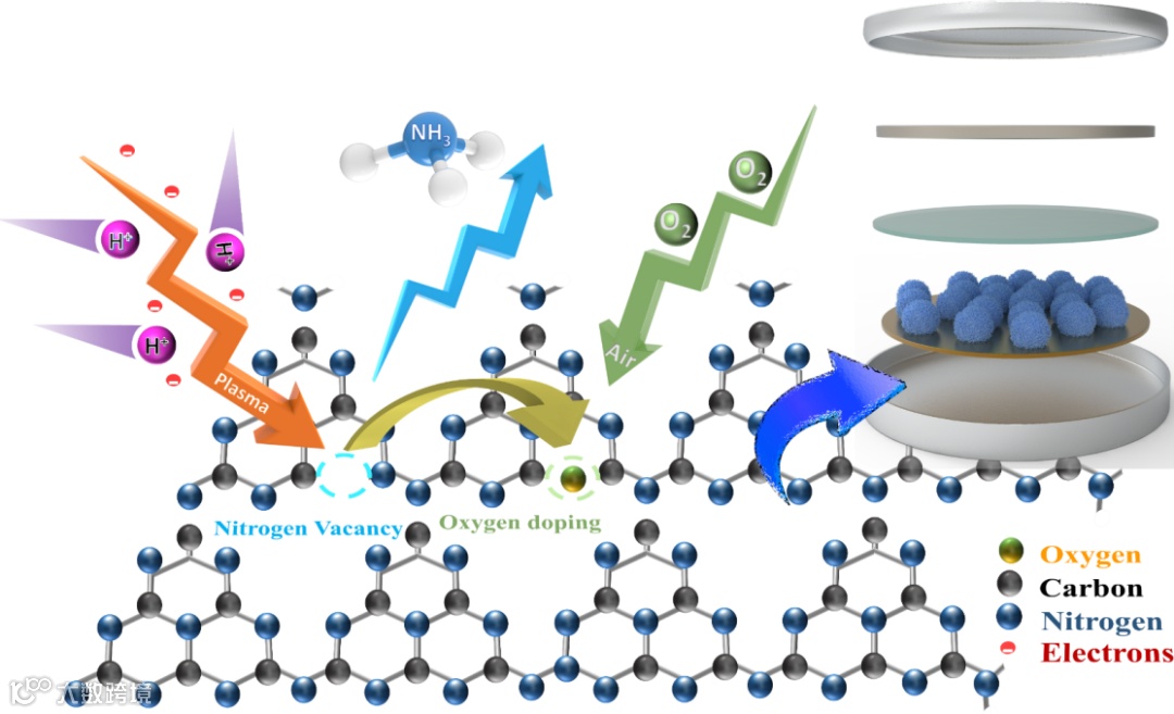 图1. 氧填充以稳定等离子体诱导的高氮空位含量的g-C3N4的机理示意图。