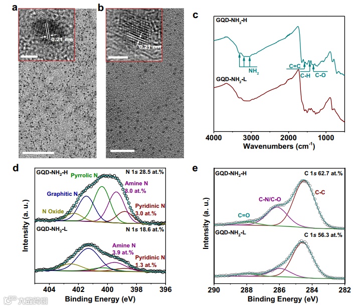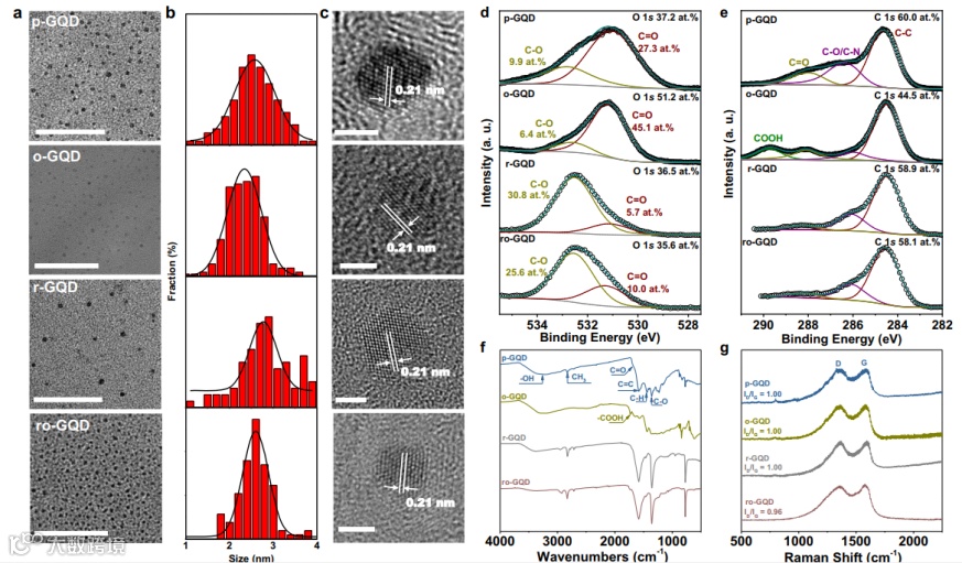 图5.对不同GQDs性质的表征