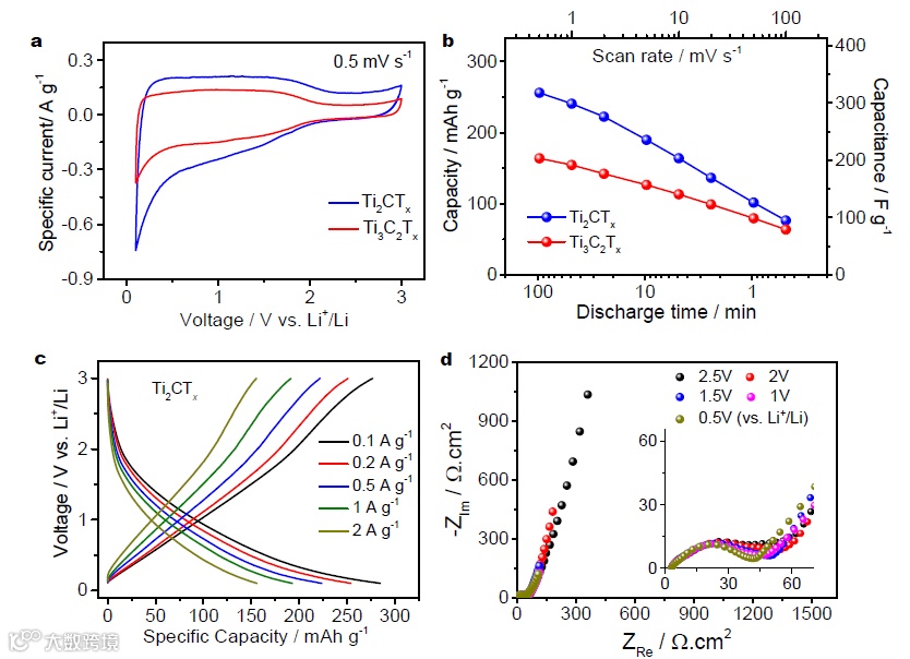 图3 Ti3C2TX和Ti2CTX MXene材料储锂性能