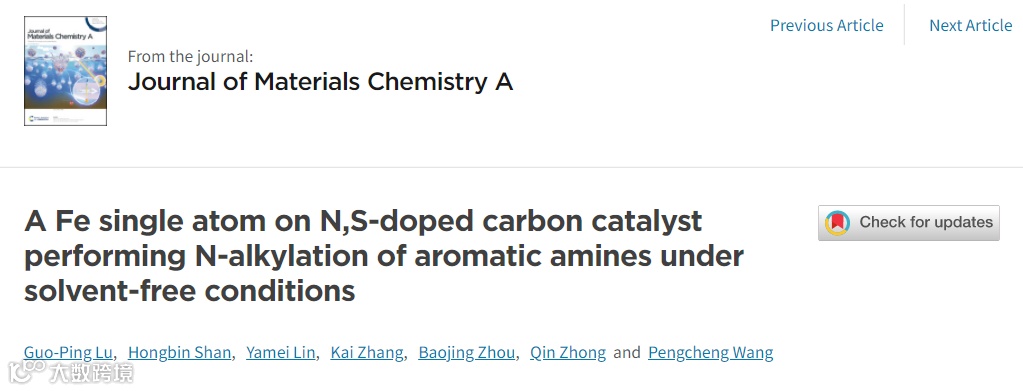 陆国平副教授JMCA:负载铁单原子的N,S共参杂碳材料催化剂催化芳香胺的N烷基化反应 科学材料站