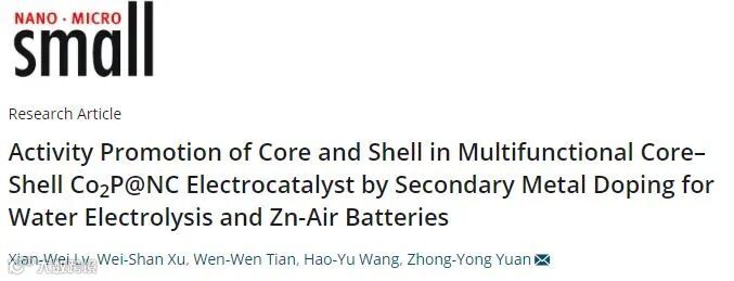 南开大学袁忠勇教授,Small文章:“一石二鸟”之同步加强Co2P@NC电催化剂的核与壳性能新策略。