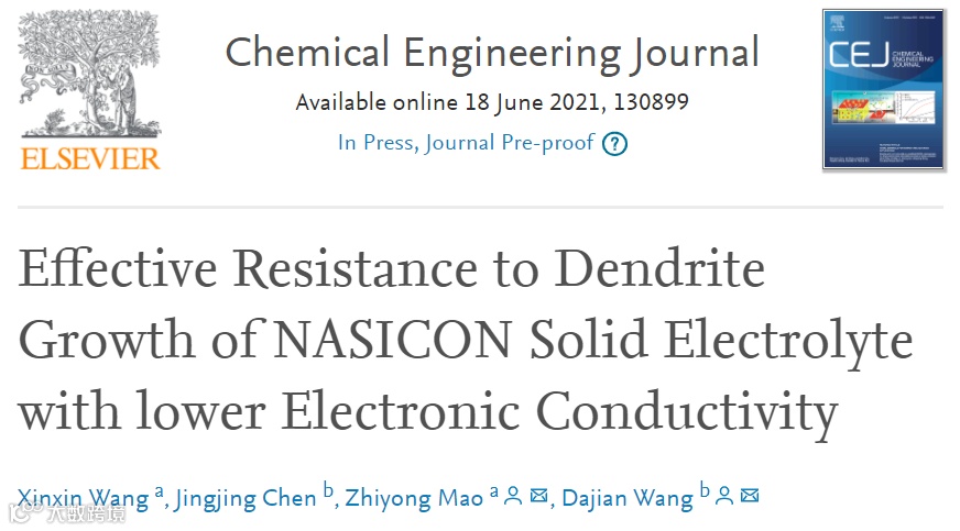 天津理工《CEJ》:可有效抑制枝晶生长的低电子导电率NASICON 固体电解质