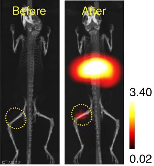 图12. 注射FeCo@C-PEG纳米颗粒前后小鼠的3D MPI-CT图像。