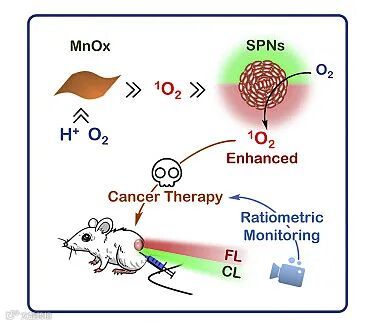 该实验室设计并构建了一种新型的基于锰-噻吩的化学发光(CL)成像和化学动力学治疗(CDT)体系,并能够利用CL和荧光(FL)比率型成像引导CDT实现肿瘤治疗的实时原位监控(图3)。