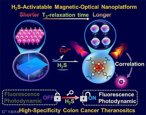 该实验室开发了第一个H2S激活的“一匙三锁”双金属纳米片(Gd/Cu-纳米片),该纳米片具有可激活的磁共振成像,荧光,光动力效应(图12)。他们将Gd掺杂的四羧基卟啉与铜离子通过水热微乳法形成Gd/Cu双金属纳米粒子。通过片层剥离,得到Gd/Cu-纳米片。通过结合MRI/荧光成像双模成像的互补优势,在H2S激活后,Gd/Cu-nanosheets可实现细胞和体内结肠癌的高特异性可视化(CCS Chem., 2020, 2, 2126-2142, DOI: 10.31635/ccschem.020.202000369)。