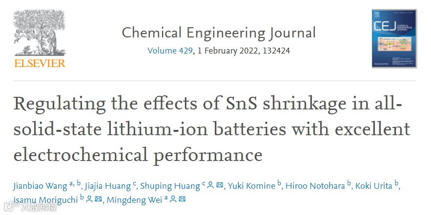本文中,来自福州大学的魏明灯教授,黄淑萍教授与日本国立長崎大学的森口勇教授合作,在国际知名期刊Chemical Engineering Journal上发表题为“Regulating the effects of SnS shrinkage in all-solid-state lithium-ion batteries with excellent electrochemical performance”的观点文章。
