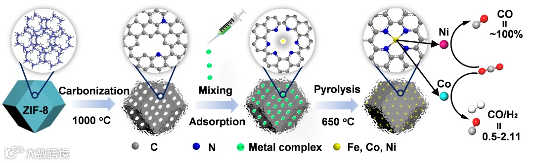 图1. M-N-C(M=Fe,Co,Ni)单原子催化剂的合成路线。