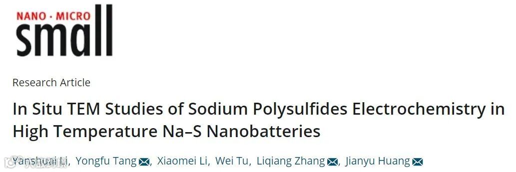 近日,来自燕山大学的黄建宇教授团队,在国际知名期刊Small上发表题为“In Situ TEM Studies of Sodium Polysulfides Electrochemistry in High Temperature Na-S Nanobatteries”的观点文章。