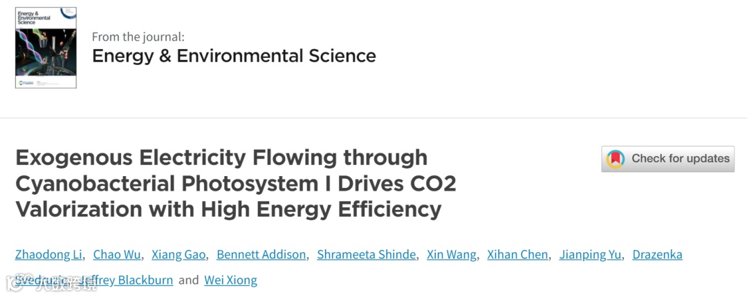 【外源电子注入蓝藻光合系统I驱动CO2还原制高价值化学品】