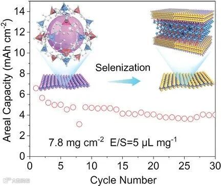 A 0D–2D heterostructure electrocatalyst from metal–organic framework and MXene is proposed as a catalytic cathode for lithium–sulfur batteries. The 0D CoZn-Se and 2D N-MXene co-catalysts form double lithiophilic–sulfiphilic binding sites, promote Li ion diffusion, and reduce the energy barrier of Li2S deposition/dissolution. The catalytic cathode exhibits ultralong cycle life and high area capacity under high sulfur loading and lean electrolyte operation.
