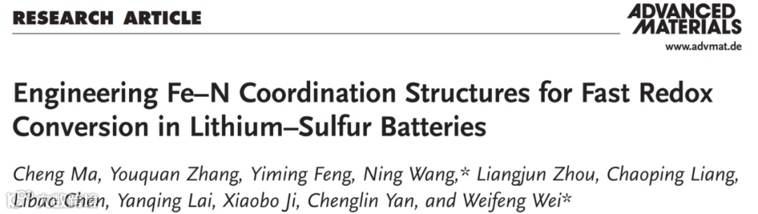 北工大王宁教授&中南大学韦伟峰教授AM:设计Fe–N配位结构促进Li–S电池快速氧化还原反应动力学