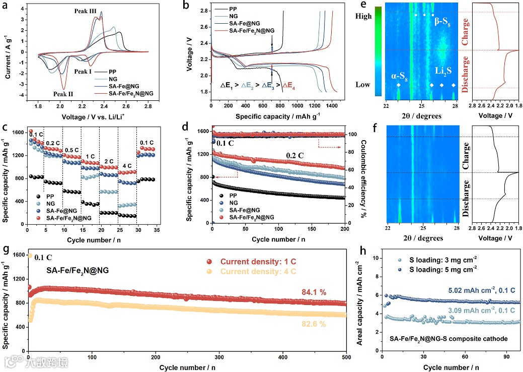 此外,极性Fe2N对多硫化物具有较强的吸附能力和快速电荷转移能力,使得多硫化物能够在催化活性中心富集而进行即时快速的电化学转换。