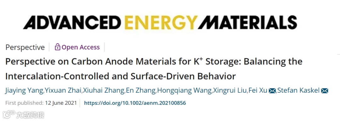 本文中,西北工业大学王洪强、徐飞团队与德累斯顿工业大学Stefan Kaskel团队合作,在国际知名期刊Advanced Energy Materials上发表题为“Perspective on Carbon Anode Materials for K+ Storage: Balancing the Intercalation-Controlled and Surface-Driven Behavior”的观点文章。
