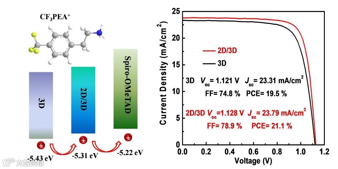 导读:该工作在3D钙钛矿薄膜上构建一层多功能2D钙钛矿(CF3PEA)2FA2Pb3I10修饰层,调控了3D钙钛矿层与空穴传输层间能级
