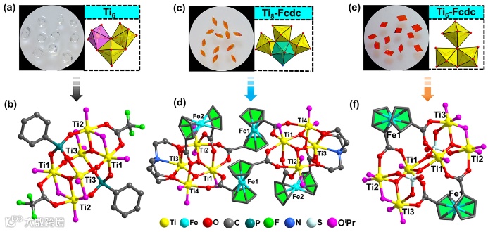 图1. Ti6,Ti8-Fcdc和Ti6-Fcdc的晶体照片和结构。