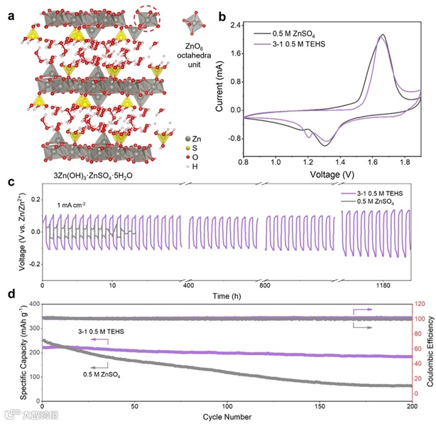 近年来,水性锌离子电池由于其本身的安全,低毒,高质量比容量 (820 mA h g-1),高功率密度和低成本的特性,成为一种非常有前景的规模化储能器件装置。但是,由于锌金属阳极在水系电解质中产生的一些副反应限制了它们的进一步发展,如析氢反应(HER),副产物的形成(如Zn4(OH)6SO4·5H2O和Zn5(OH)8Cl2·H2O)和枝晶的形成等。这些问题严重降低了电池的库仑效率 (CE),并降低了锌阳极的可逆性,从而大大降低了电池的性能。现有电解质改性策略的研究包括盐包水(WIS)电解质,深共晶溶剂(DES),有机溶剂等,它们从重组Zn2+的溶剂化结构,调节氢键,抑制H2O的活性等方面抑制副反应的发生,提升电池的性能。但值得注意的是,而以上大多数电解质系统都极大的降低了电解质体系中的自由水含量,牺牲了功率密度、低成本、安全性和环境友好等内在的优势。因此,亟需进一步开发一种能够实现锌阳极高度可逆的富水电解质系统。由之前报道的文献可知,引入竞争性配体来调节Zn2+的溶剂化过程是一种有效的策略。但是,如何选择合适的配体(具有合适的路易斯碱度,安全性,低成本和环境友好特性),以与过量的自由水竞争并进一步调节富水电解质体系中Zn2+的溶剂化壳层,是其中关键的科学问题。