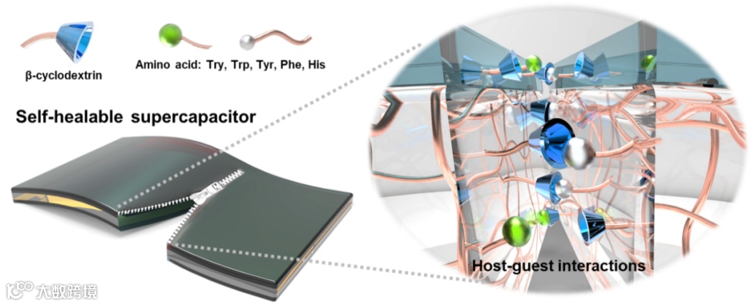 图1. 基于主客体配位化学的自愈合超分子全聚合物超电容。