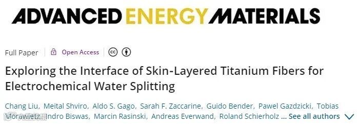 基于此,JülichGmbH研究中心Marcelo Carmo教授Advanced Energy Materials (影响因子:25.245)上发表题为“Exploring the Interface of Skin‐Layered Titanium Fibers for Electrochemical Water Splitting”的研究工作。