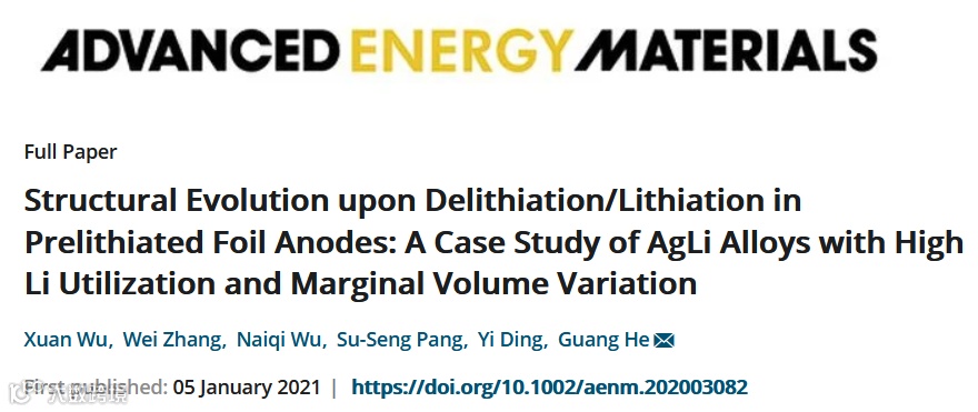 何广教授AEM:预锂化负极中去锂/锂化的结构演变:以高锂利用率和边际体积变化的AgLi合金为例