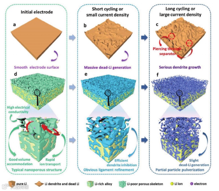 要点一:这项工作基于合金化/脱合金和镀层/剥离化学方法对称地探索了富锂箔负极的结构演变。
