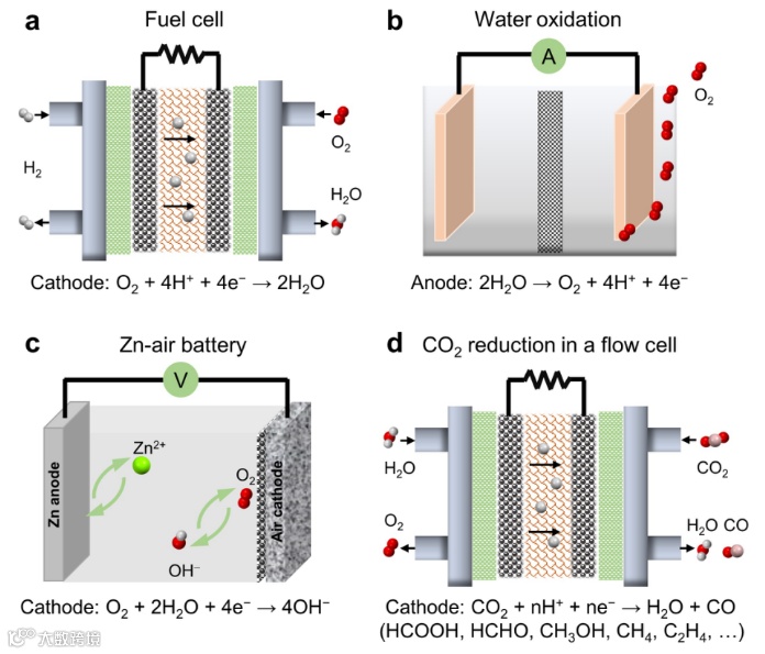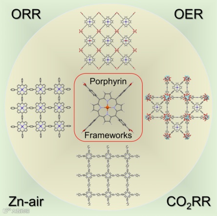 图1. 卟啉基框架材料用于ORR、OER、Zn-air电池和CO2RR。