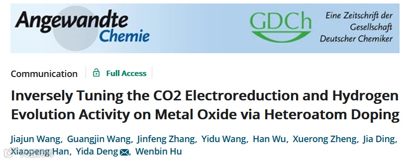 韩晓鹏副教授,邓意达教授,胡文彬教授Angew:通过杂原子掺杂反调节金属氧化物上的CO2电还原和析氢活性